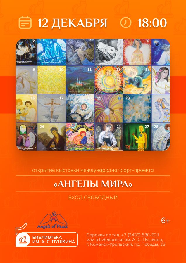 30 октября в 19:00 откроется выставка оригиналов картин международного проекта «Ангелы Мира» со всеми их тайнами и волшебными историями. Целый месяц будут проходить выставки, лекции, мастер-классы.