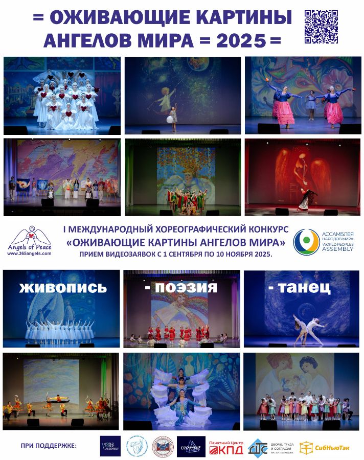 The international project "Angels of Peace" was launched 11 years ago, initiated by the artist Yulia Ivanova from Krasnoyarsk. During this time, 365 artists from 25 countries took part in it, more than 400 exhibitions were held in Russia and abroad. Every year, competitions of readers, poets and children's drawings are held. The project is not tied to religion, it is about Love, Gratitude and Unity. More than 55 medical institutions and hospitals throughout Russia have been decorated with posters with paintings from the project. Now it is time for choreographic groups to contribute to the creation of creative images of the art project in dance, combining painting, poetry and the plasticity of the human body.