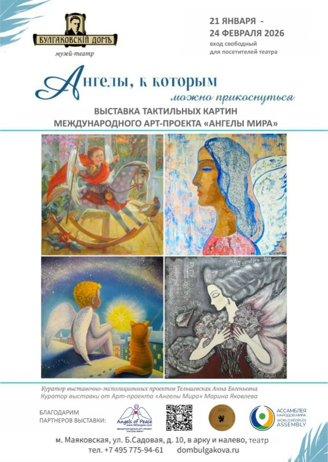 21 января 2026 года, в День объятий, В ФОЙЕ ТЕАТРА ИМЕНИ М.А.БУЛГАКОВА в Москве открылась выставка тактильных картин Международный Арт -проект "Ангелы Мира"!