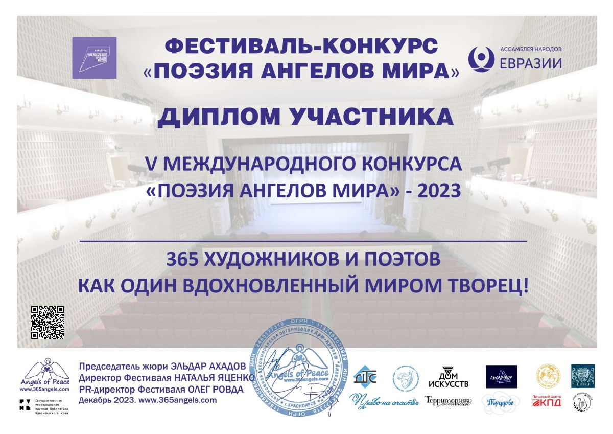 Благодарим за прекрасные стихи и ждем вас на VI Международном конкурсе "Поэзия Ангелов Мира" в апреле 2024 года.