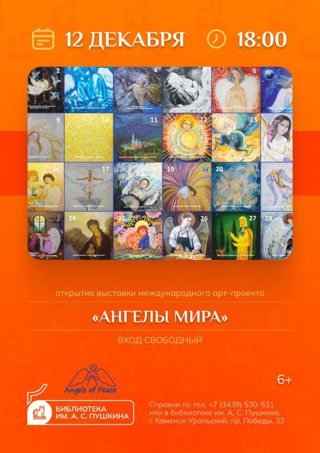12 декабря в 18 часов в библиотеке им. А. С. Пушкина состоится открытие выставки Международного арт-проекта «Ангелы мира».