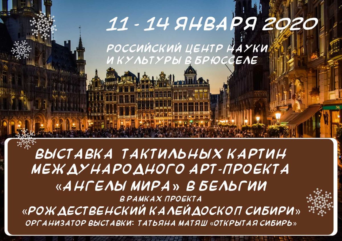 11-14 января 2020 года в Российском центре науки и культуры в Брюсселе в рамках проекта "Открыта Сибирь" прошла выставка тактильных картин Международного арт-проекта "Ангелы Мира". Благодарим кураторов выставки Татьяну Матяш и Ирину Жуковскую за представление проекта в Бельгии.
