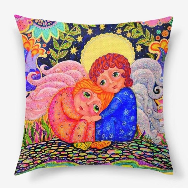 Оригинальные декоративные подушки с изображением картин арт-проекта "Ангелы Мира".